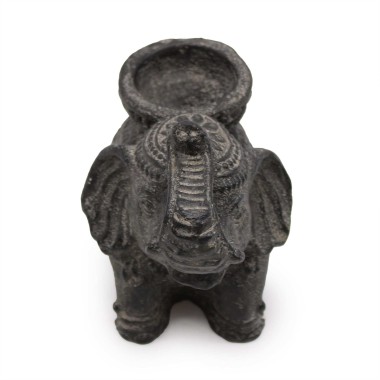 Porte-Encens Éléphant Noir Antique en Béton 14cm | Brûleur d'Encens Décoratif